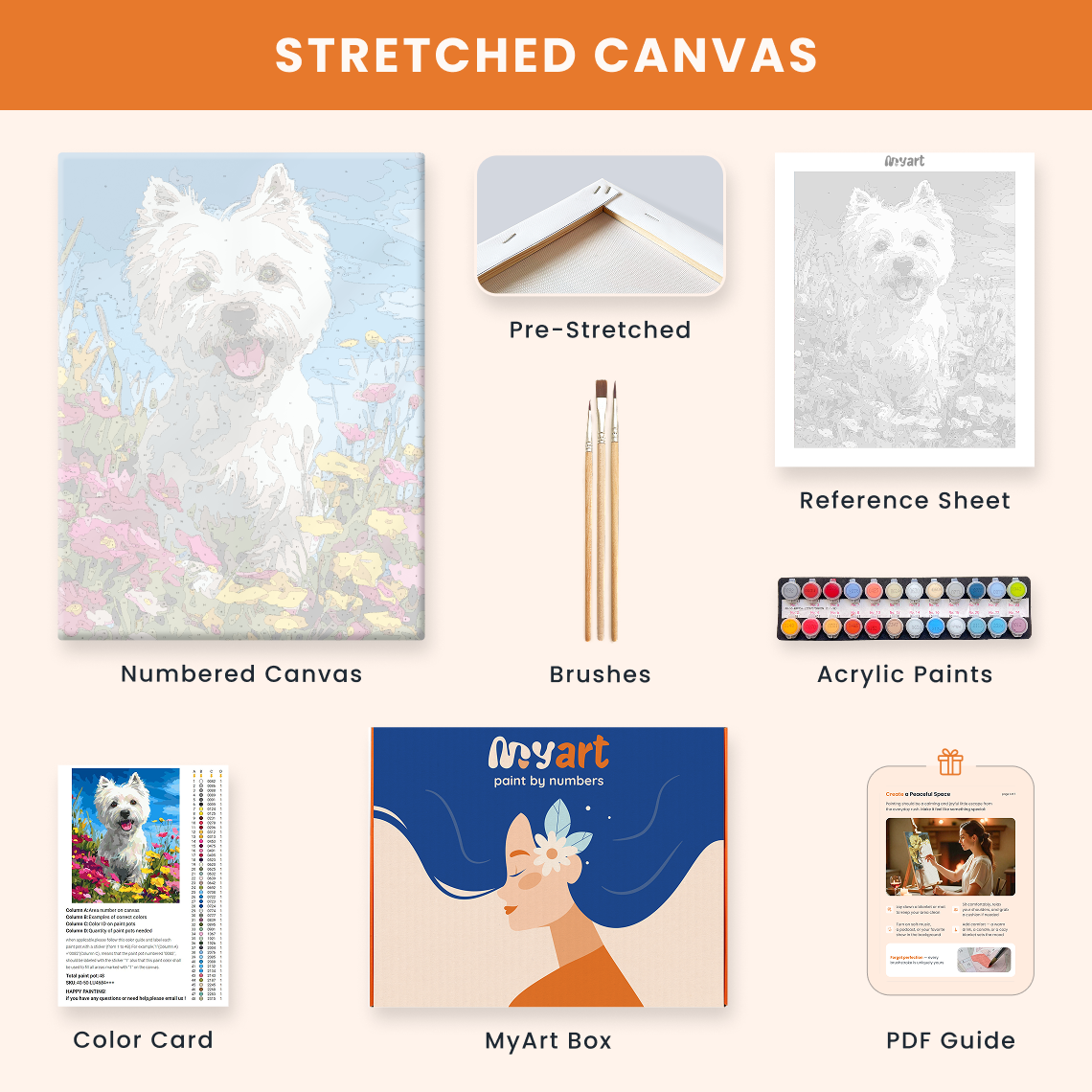 - Premium acrylic paint set (pre-mixed and numbered)