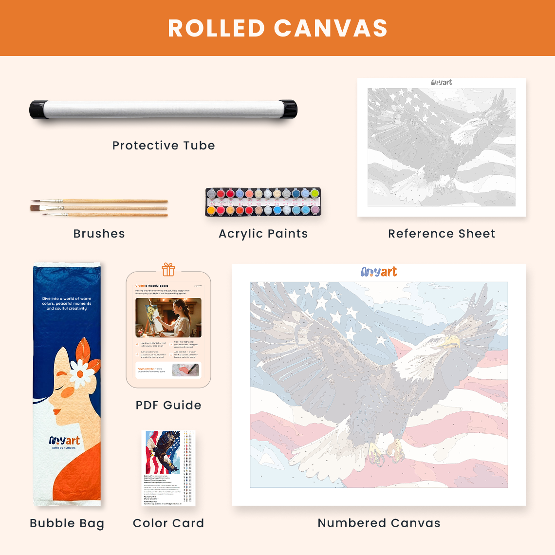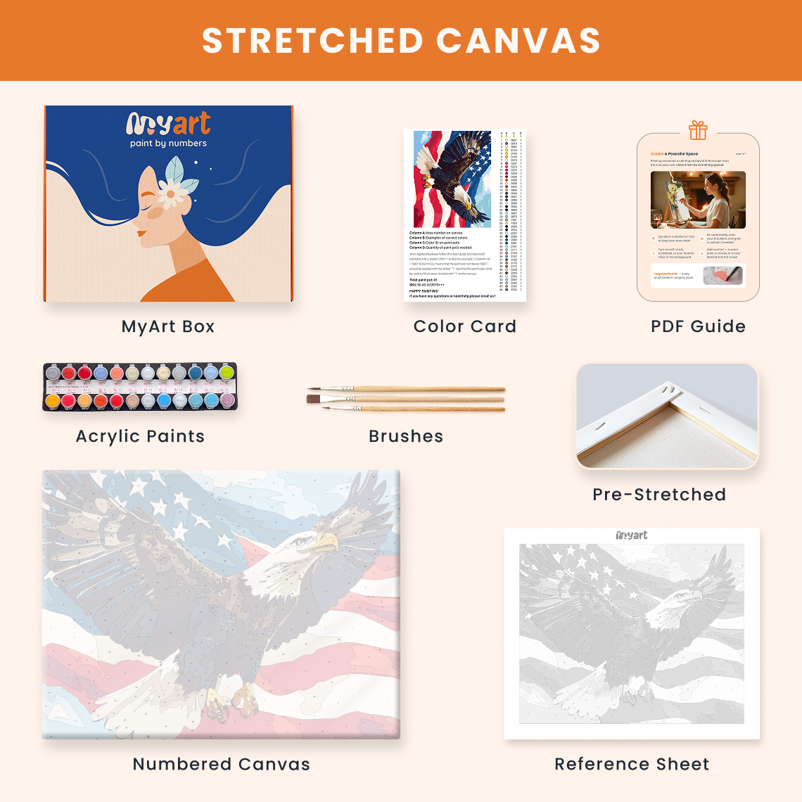 - Premium acrylic paint set (pre-mixed and numbered)