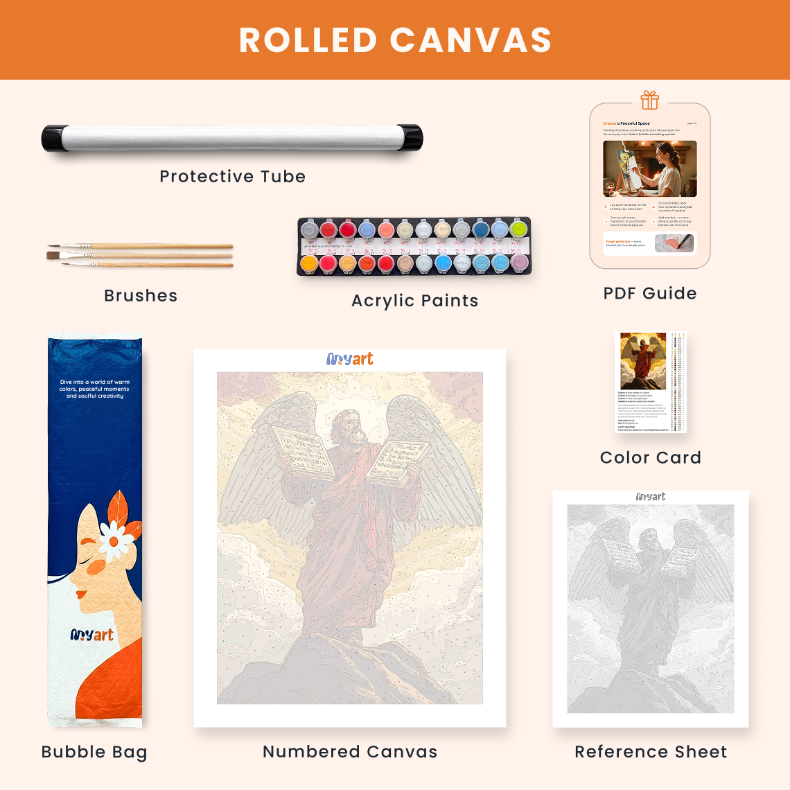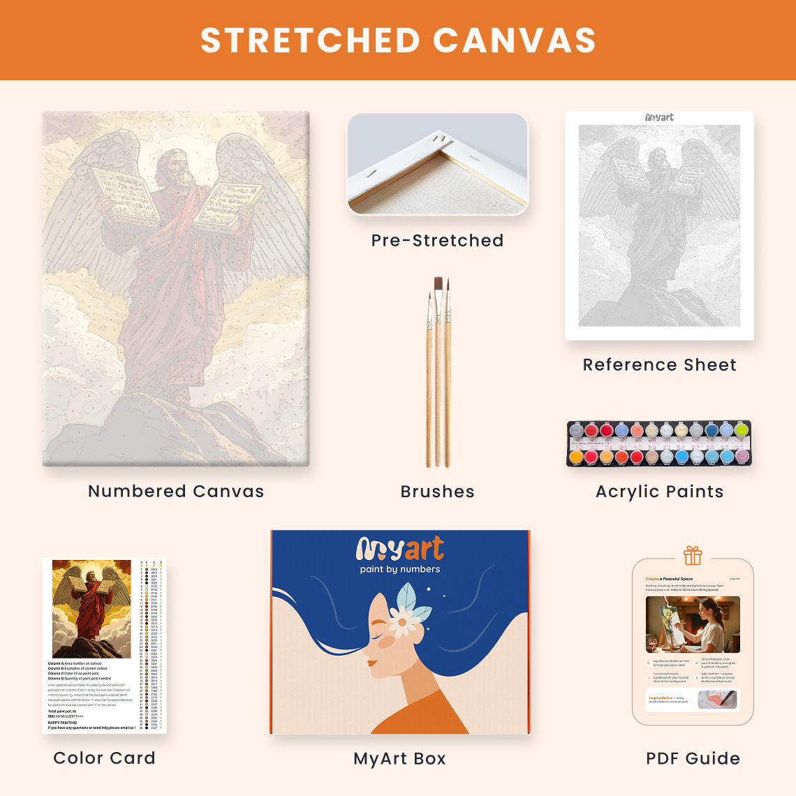 - Premium acrylic paint set (pre-mixed and numbered)