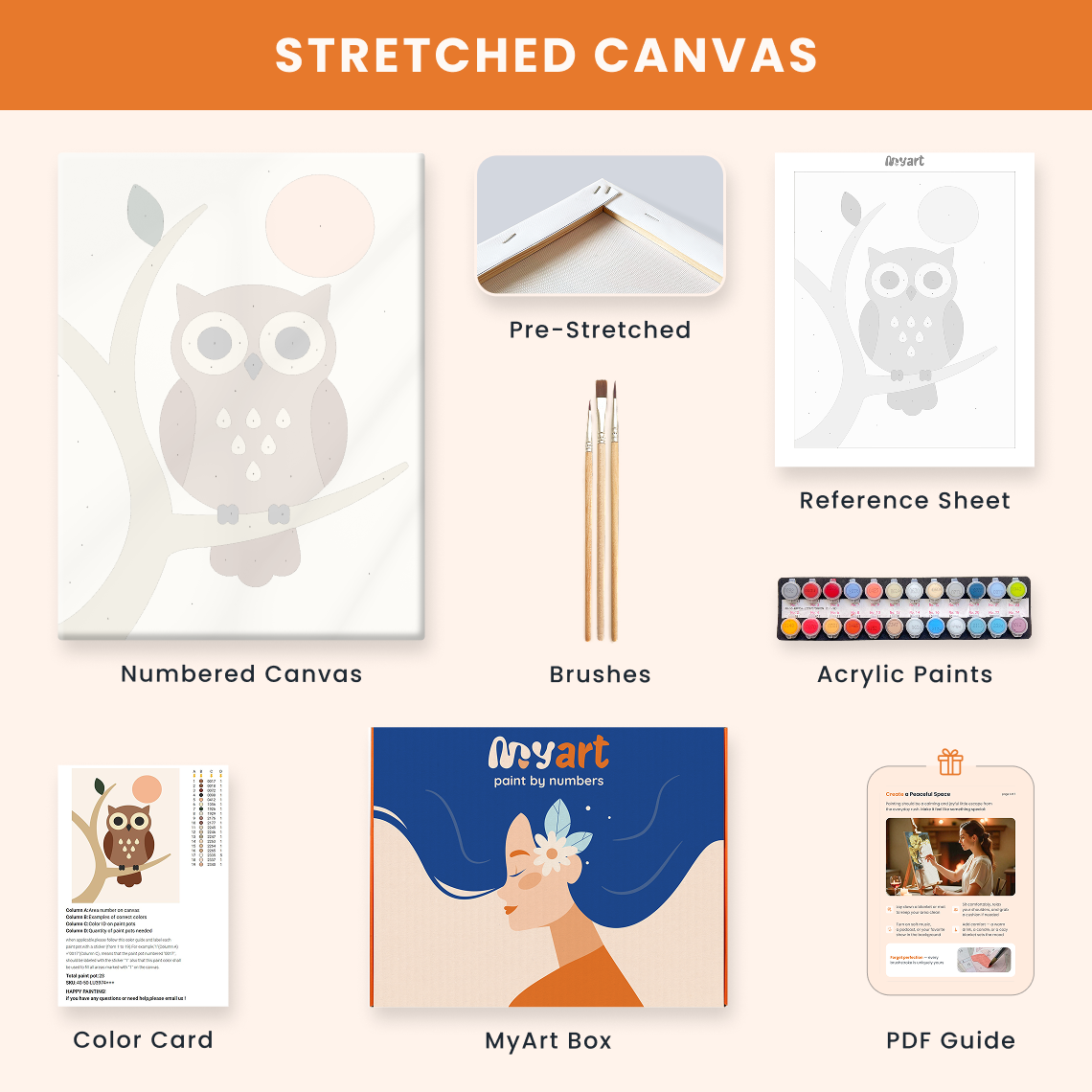 - Premium acrylic paint set (pre-mixed and numbered)