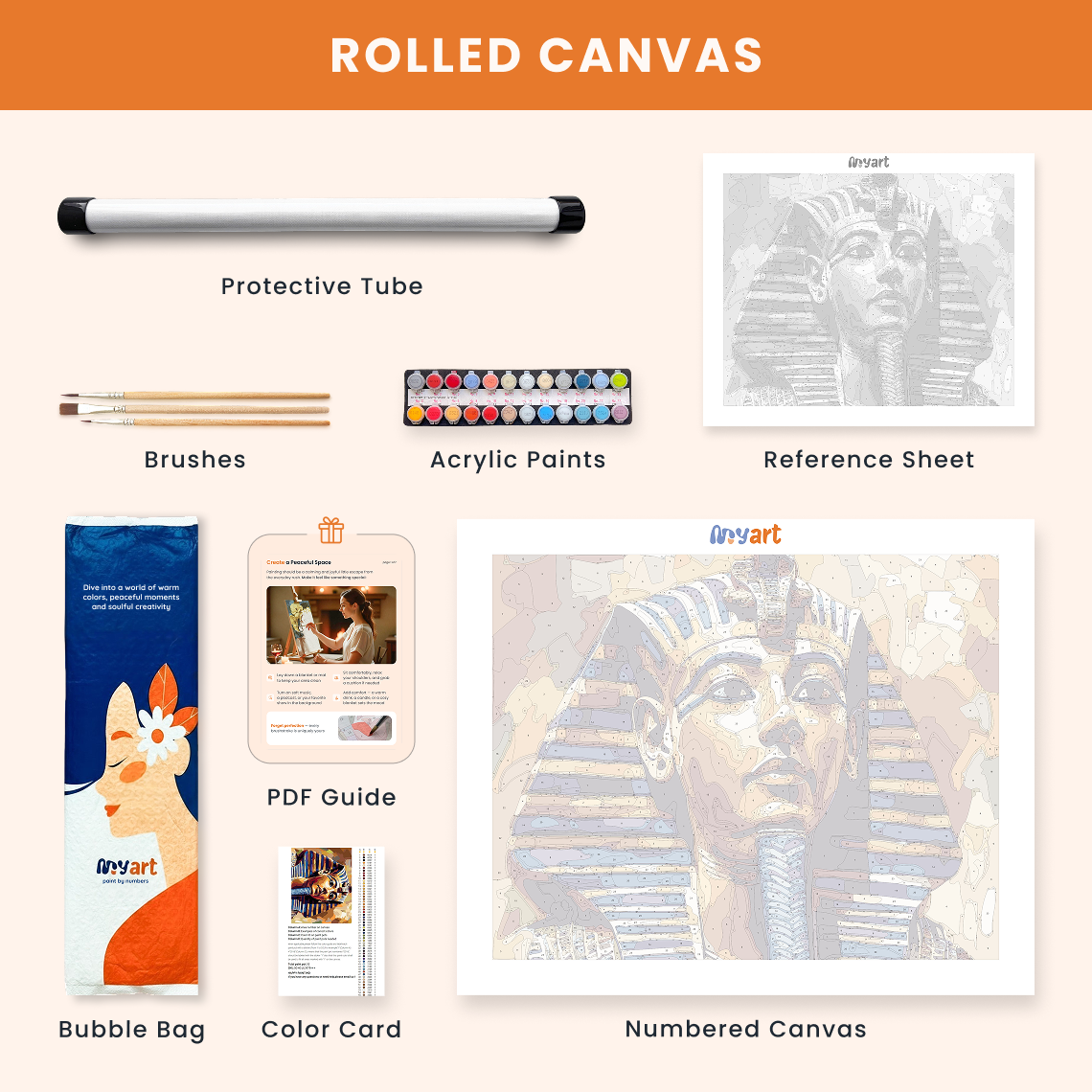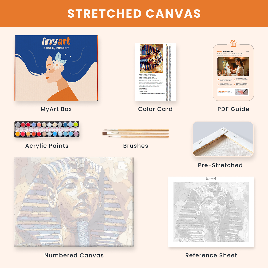- Premium acrylic paint set (pre-mixed and numbered)